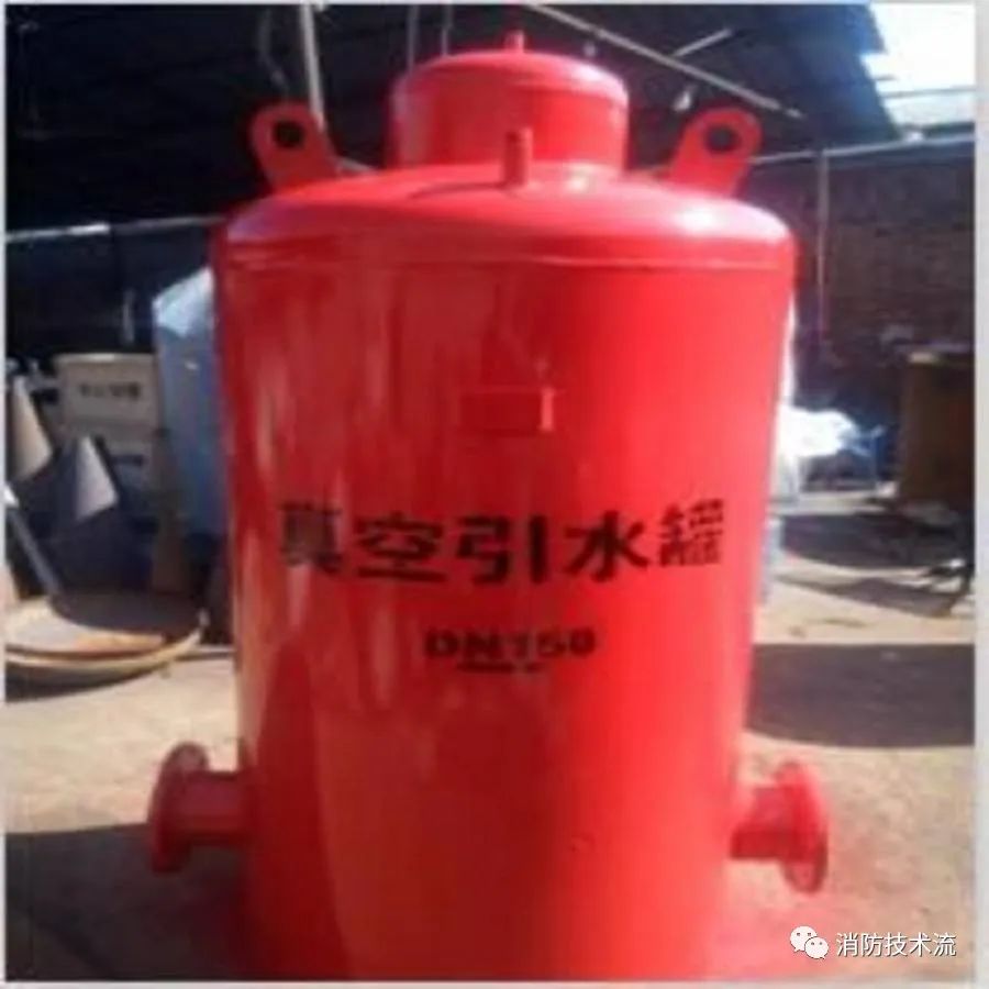 一些老舊建筑的改造,受面積或位置原因?qū)е孪浪貌荒軐?shí)現(xiàn)自灌式吸水,比如消防水泵只能安裝在消防水池的上蓋,此時(shí)水泵的吸水管只能向下伸入水池的水位中,造成吸水管一段管道無(wú)水,這種情況消防水泵在啟動(dòng)時(shí)不能吸上水,而這樣的例子并不少見(jiàn),以下介紹的真空罐(也稱負(fù)壓罐)是解決這個(gè)問(wèn)題的一種方式。