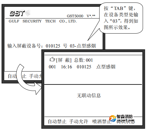 d.按“確認(rèn)”鍵存儲,如該設(shè)備未曾被屏蔽,屏幕的屏蔽信息中將增加該設(shè)備,否則在顯示屏上提示輸入錯誤。